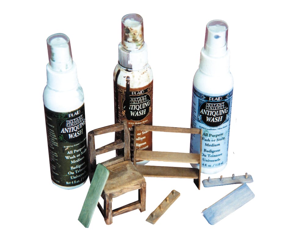 Nowadays there are a huge amount of different products on the market to help us produce an instant aged effect. I personally find that the only problem with them is that they are not designed for the miniaturist, and usually are only available in huge jars or cans that can therefore make the process expensive.
