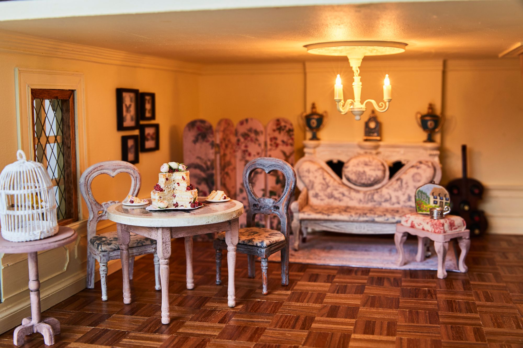 My favourite pieces I have collected from other miniaturists would be my birdcage and shopping trolley from Lidi Stroud. She is an IGMA artisan and has been very encouraging towards my miniatures and given me great advice that has really improved my work. I also love my dresses from Janis Hamilton of Tiny Finery, my tiered cake and cake slices from Gosia Suchodolska, my kitchen stoneware from Stokesay Ware and the birdcage from Veronique Lux.