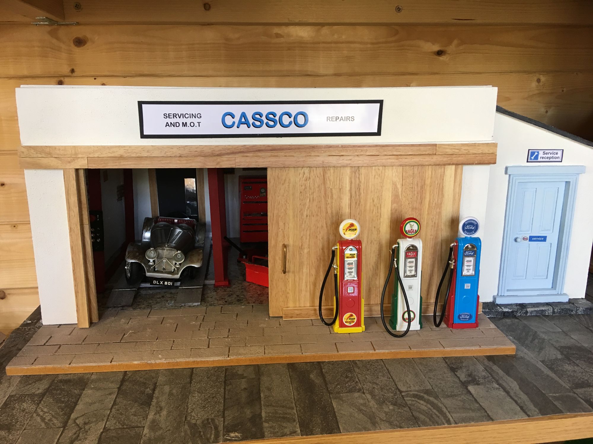 Some of the purchased items include the motorbike, petrol pumps, axle stands, oil drum, oil cans and tools as Barbara realised some things were best left to the experts. The name CASSCO on the front comes from the name of her husband’s grandfather’s garage which he owned in the 1930s, and it seemed eminently appropriate.