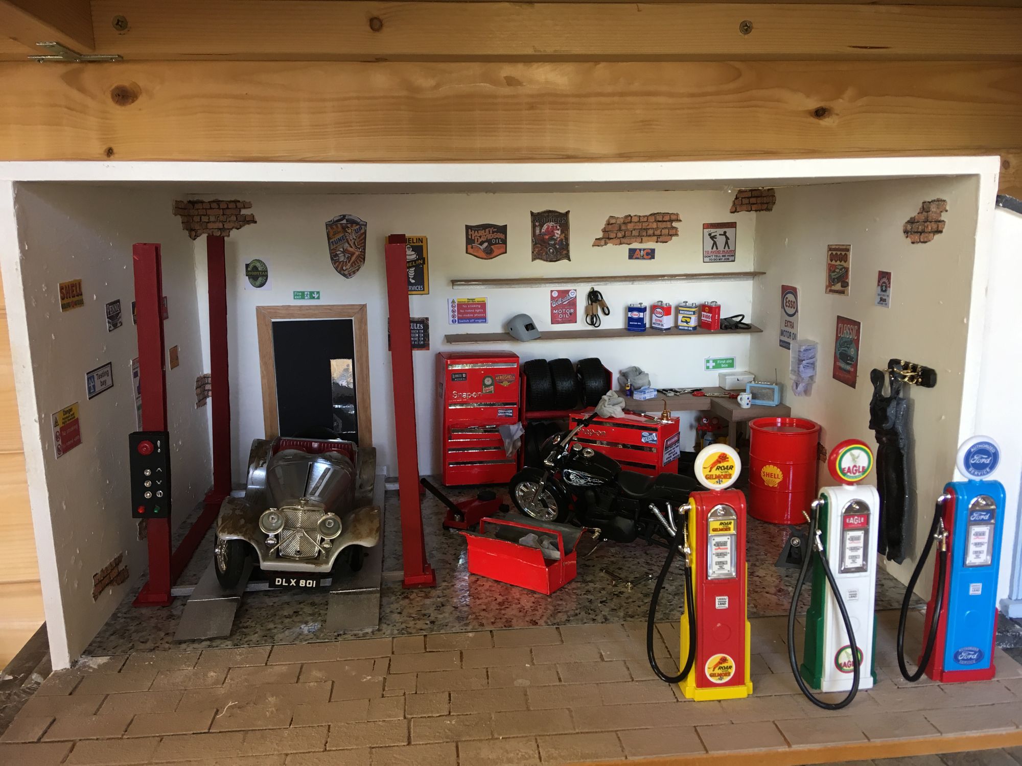 This time it’s a fully functioning garage which is to be added to the ever-expanding village which sits in her purpose-built cabin/workshop in her garden, and I am really, really envious!
